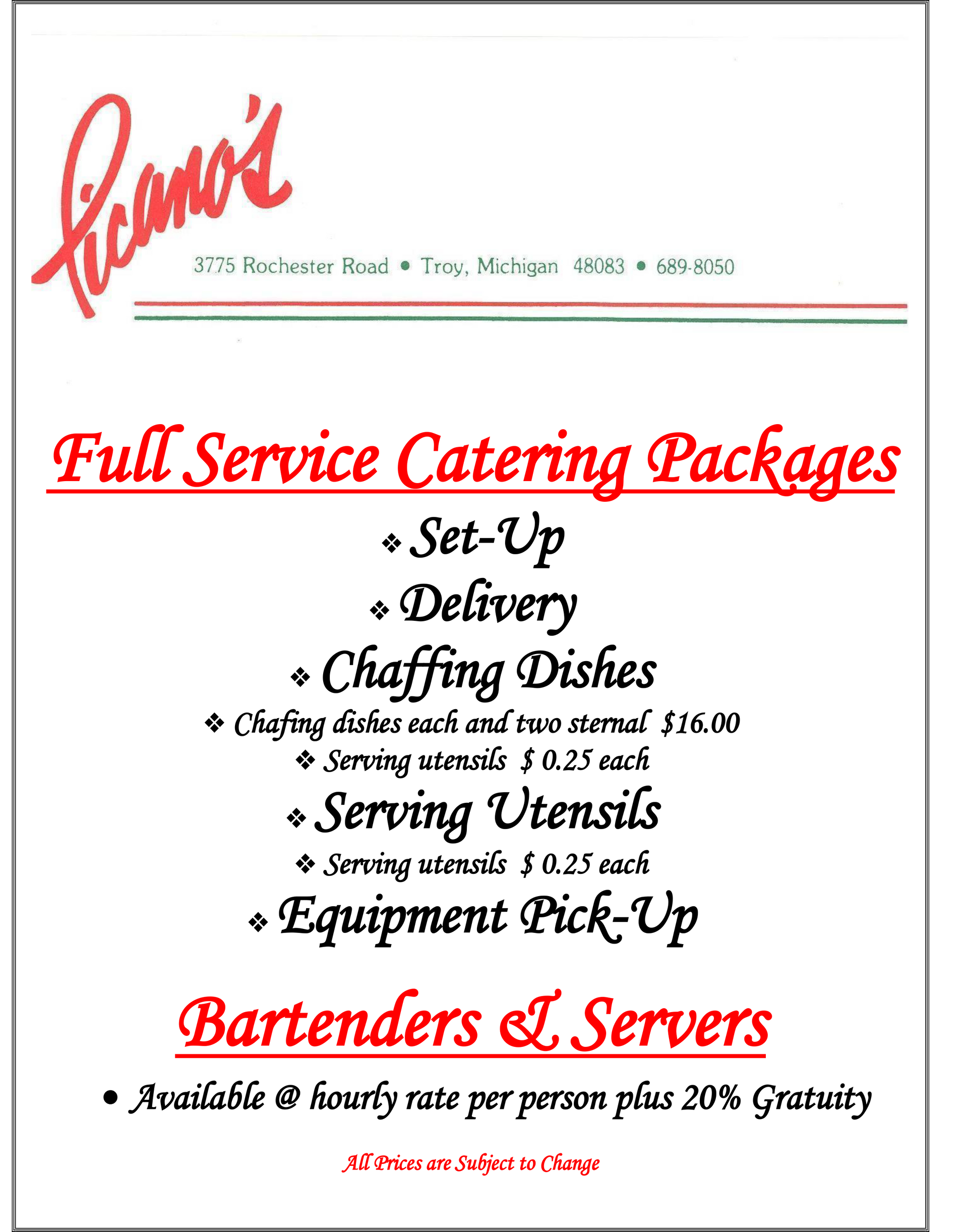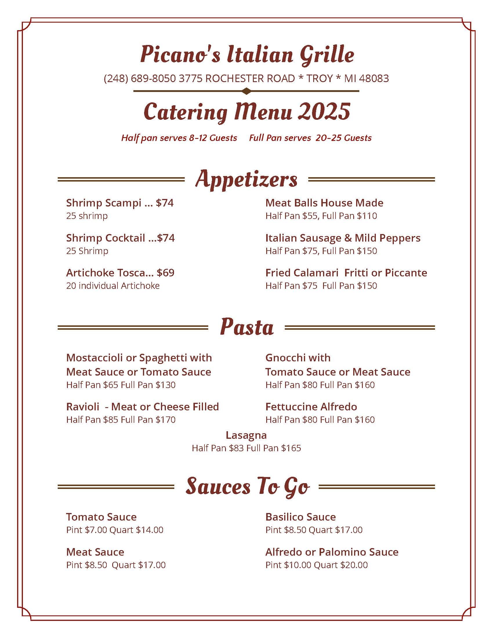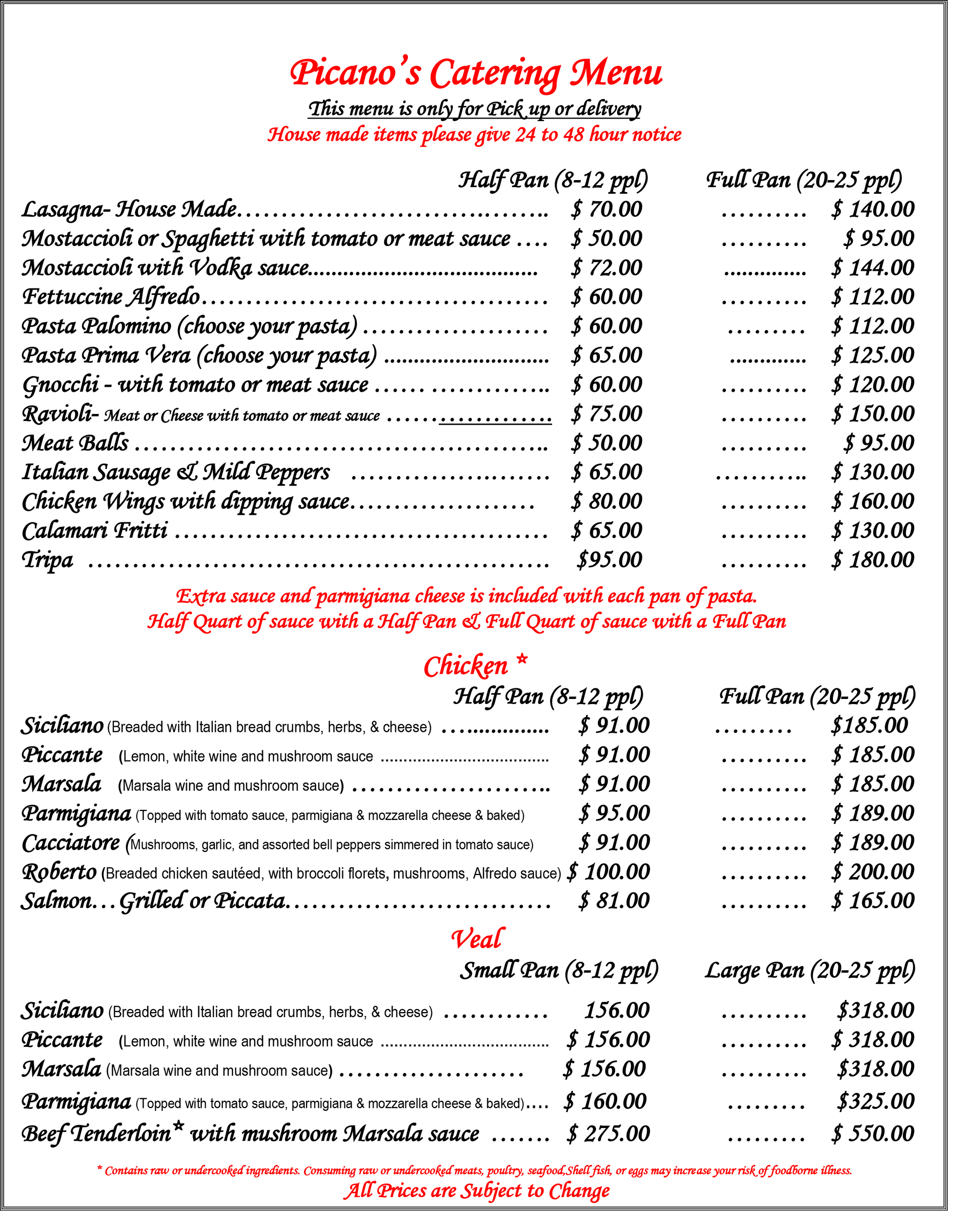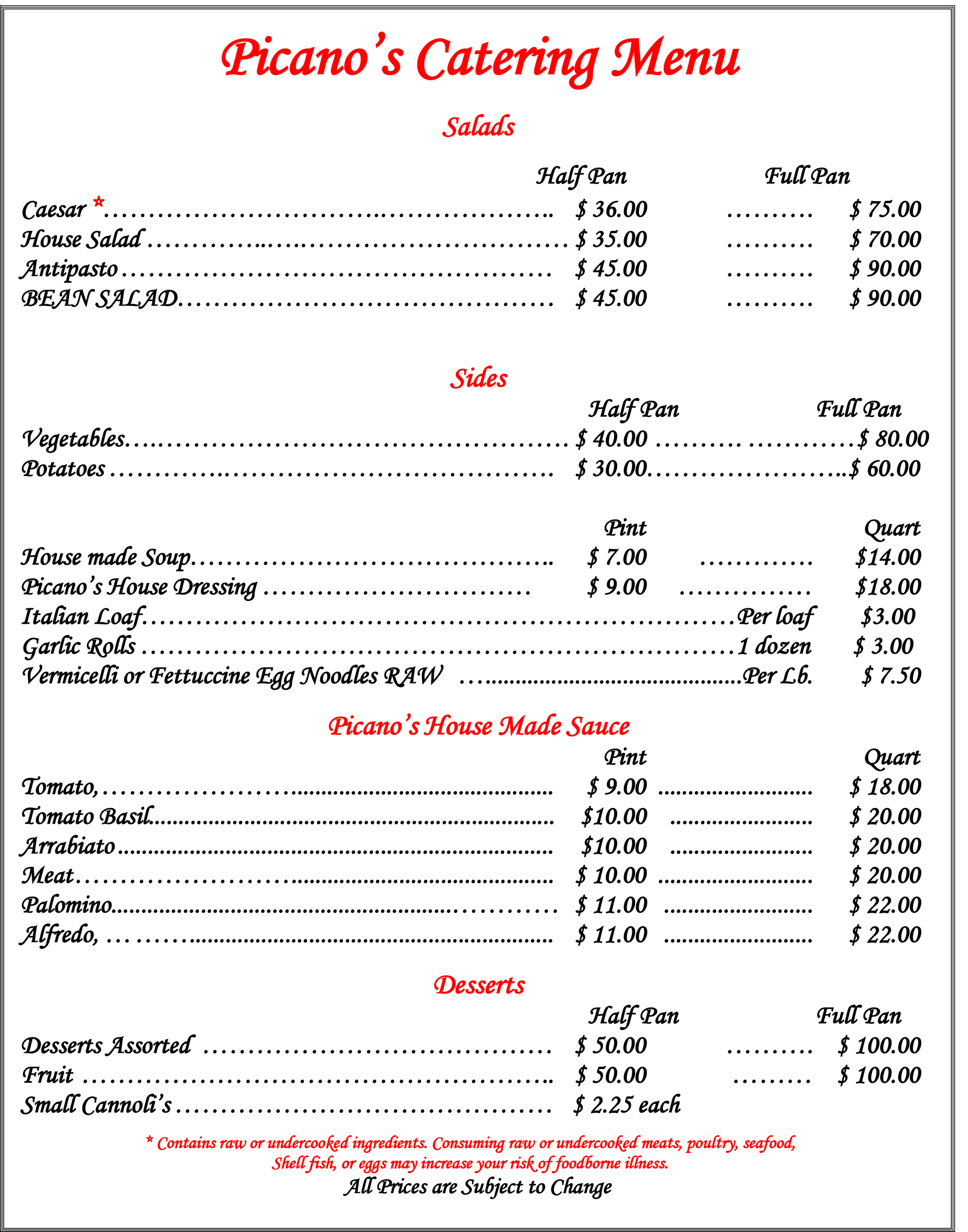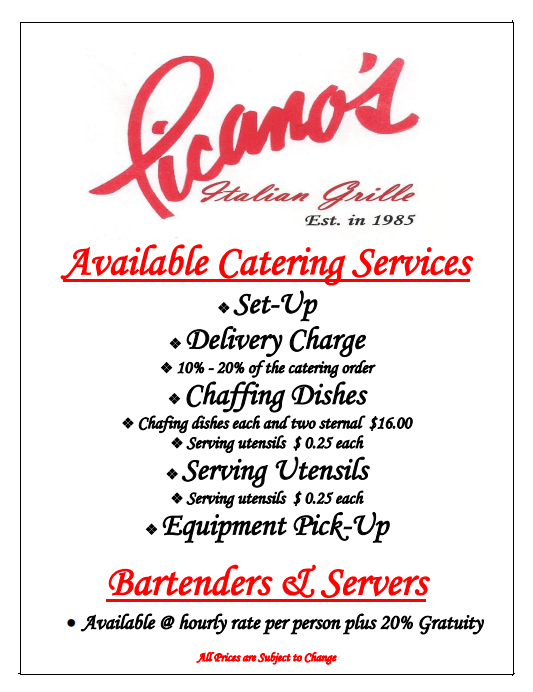 Hire Picano’s Italian Restaurant to Cater Your Special Event